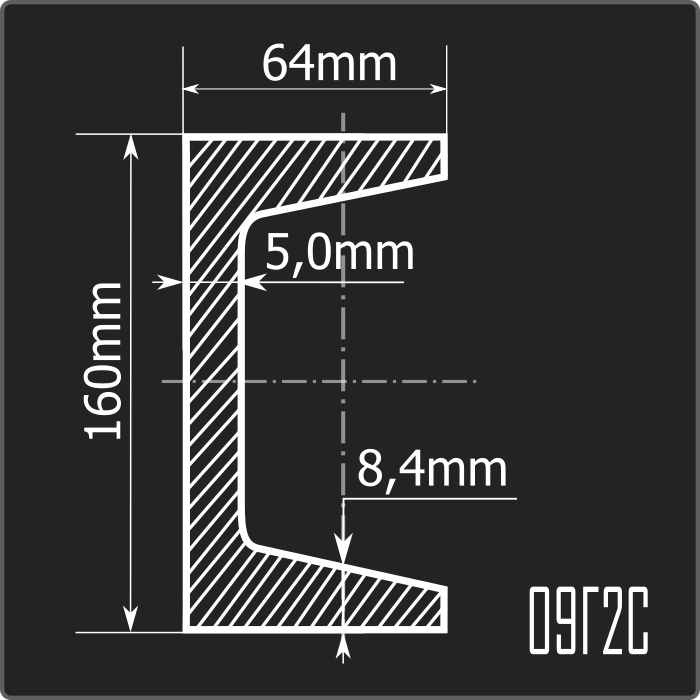 —Швеллер 16У 09Г2С 12м ГОСТ 19281-2014/ГОСТ 8240-97
