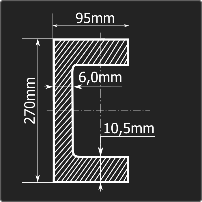 Швеллер стальной горячекатаный с параллельными гранями полок 27П и длиной 12м. Материал - углеродистая сталь. Соответствует требованиям ГОСТ 535-2005.