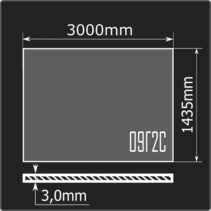 Лист стальной горячекатаный толщиной 3,0мм, шириной 1500мм и длиной 3000мм. Материал - низколегированная сталь. Соответствует требованиям ГОСТ 19281-2014.