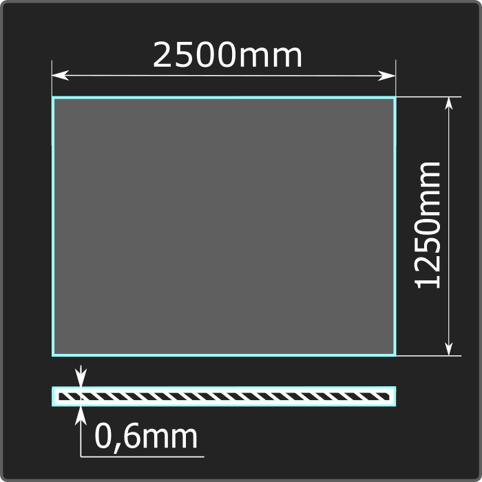 Лист стальной холоднокатаный толщиной 0,6мм, шириной 1250мм и длиной 2500мм. Сталь 08кп. Соответствует требованиям ГОСТ 16523-97.