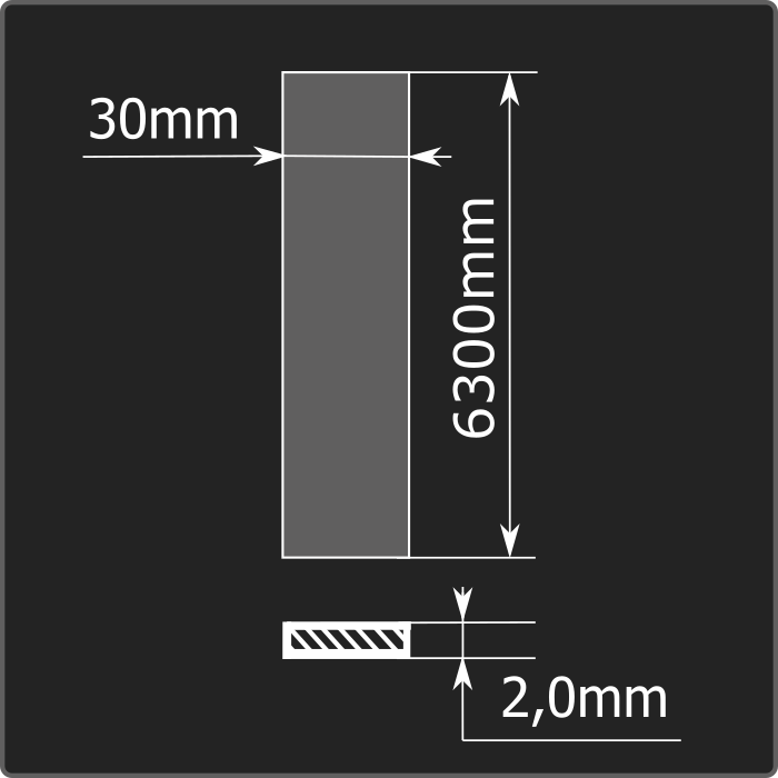 Полоса стальная горячекатаная толщиной 2,0мм, шириной 30мм и длиной 6,3м. Материал - углеродистая сталь. Соответствует требованиям ГОСТ 103-2006.