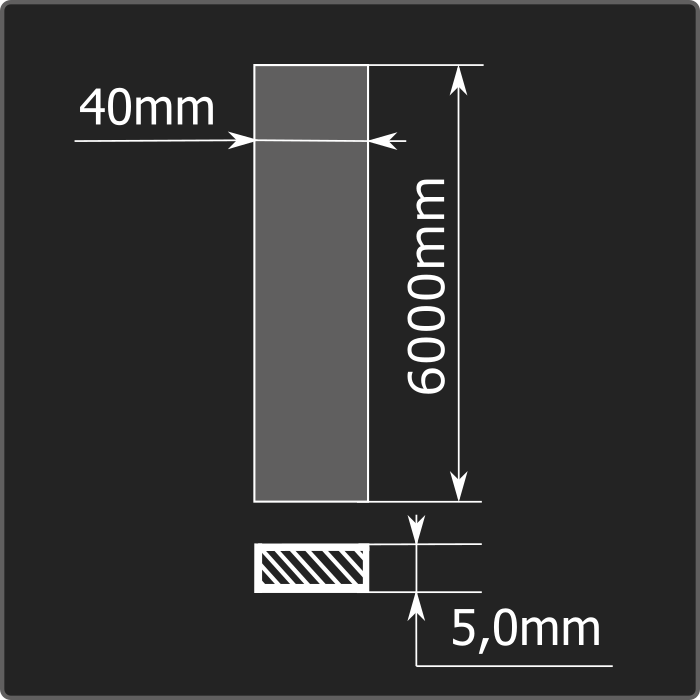 Полоса стальная горячекатаная толщиной 5,0мм, шириной 40мм и длиной 6м. Материал - углеродистая сталь. Соответствует требованиям ГОСТ 103-2006.