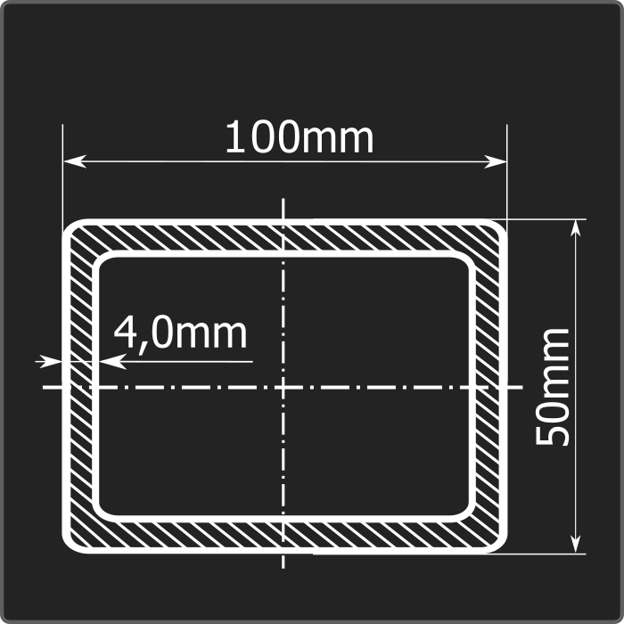 Труба профильная стальная прямоугольного сечения 100*50мм, длиной 12м и толщиной 4,0мм. Материал - углеродистая сталь. Соответствует требованиям ГОСТ 13663-86. Стандартный пакет: вес - 6,264тн., количество - 60шт.